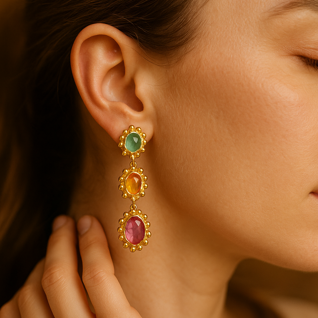 Undine | Pozłacane kolczyki z kolorowymi kamieniami